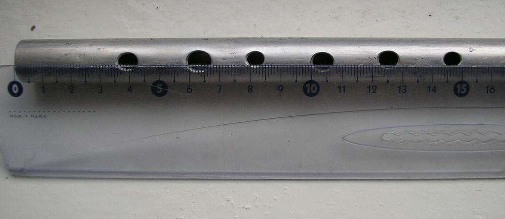 А что, так трудно приложить линейку нулем к торцу дудки и, прочитав шесть цифр напротив центров отверстий и одну напротив края лезвия, отвязаться от меня (такого тупого :) ) ?