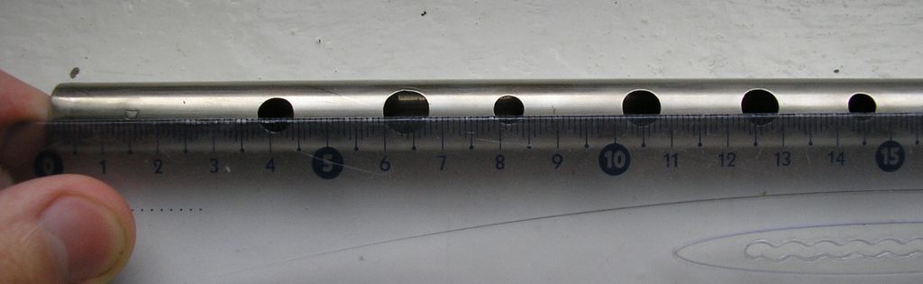 Еще пару вопросов, коль пошла такая пьянка :) . Расположение отверстий точно соответствует диксону ? (не мог бы ты и его так сфотать, или его у тебя сейчас нет? - у меня есть дюралевая труба с точно таким же внутренним диаметром - 12,8/16х550мм) - внутренние диаметры ведь очень совпадают. Отверстия изнутри растачивал в сторону свистка? Расход воздуха не напрягает, особенно во второй октаве? Звук чистый или с характерным шипением и по октавам? (мне хочется "грязный" и "скрипучий" :) )