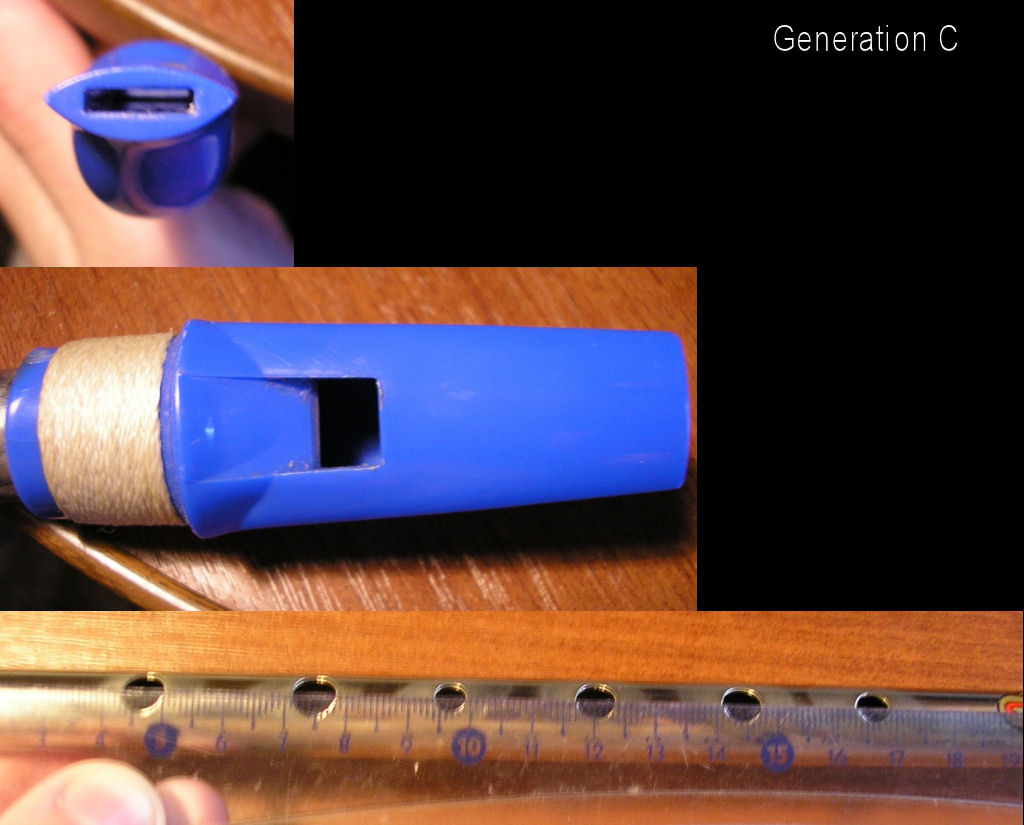 Звук радует. Если б я догадался сделать окно побольше, цены б ему не было, а так он тиховат. Не очень устойчив как на низах, так и в начале второй и третьей октав, но после прогрева все становится нормально. Основное назначение алюминиевого лезвия - бамбуковое лохматится. А так звук побогаче стал, добавилось верхов.