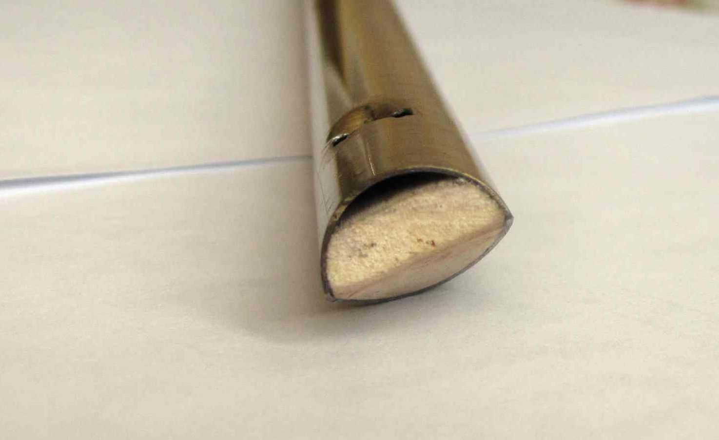У меня остался обрезок стальной трубы Ф16х0.5 .Наружная сторона имеет декоративное покрытие. У меня под бронзу.