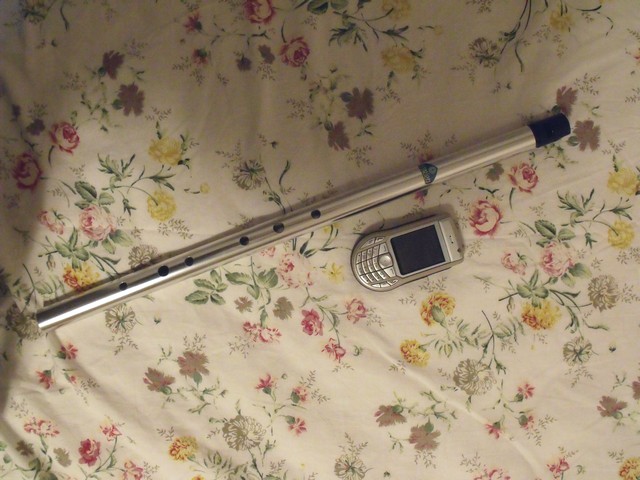 Материал - алюминий, фипл пластиковый. На сайте мастера можно послушать аудизаписи. Вистл настраиваемый (путем перемещения фиппла).